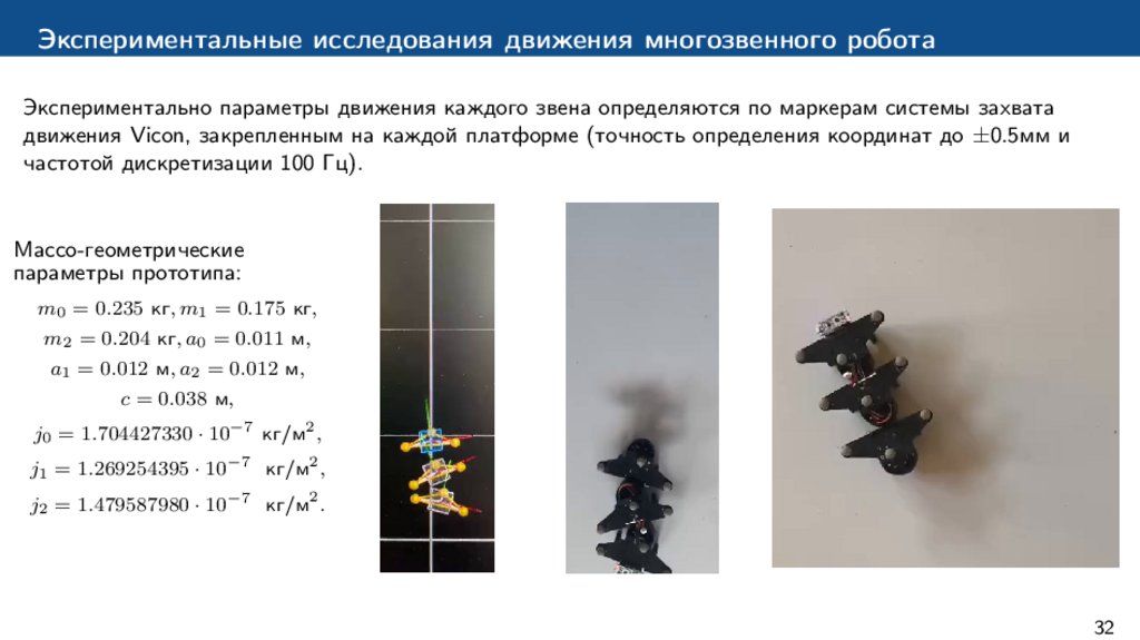 Экспериментальные исследования движения многозвенного роботаДля оценки адекватности предложенной модели движения была проведена серия экспериментов с