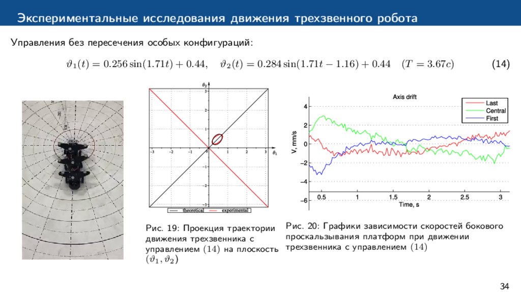 Экспериментальные исследования движения трехзвенного роботаУправления без пересечения особых конфигураций: