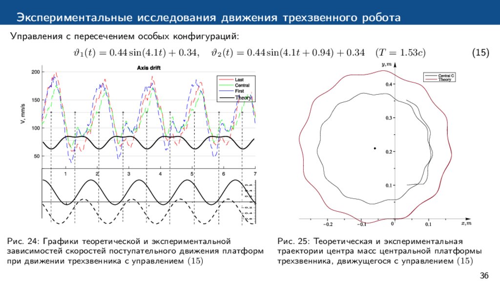 Экспериментальные исследования движения трехзвенного роботаРис. 22: Теоретическая и экспериментальная траектории
