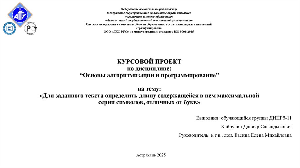 1. КУРСОВОЙ ПРОЕКТ по дисциплине: “Основы алгоритмизации и программирование” на тему: «Для заданного текста определить длину