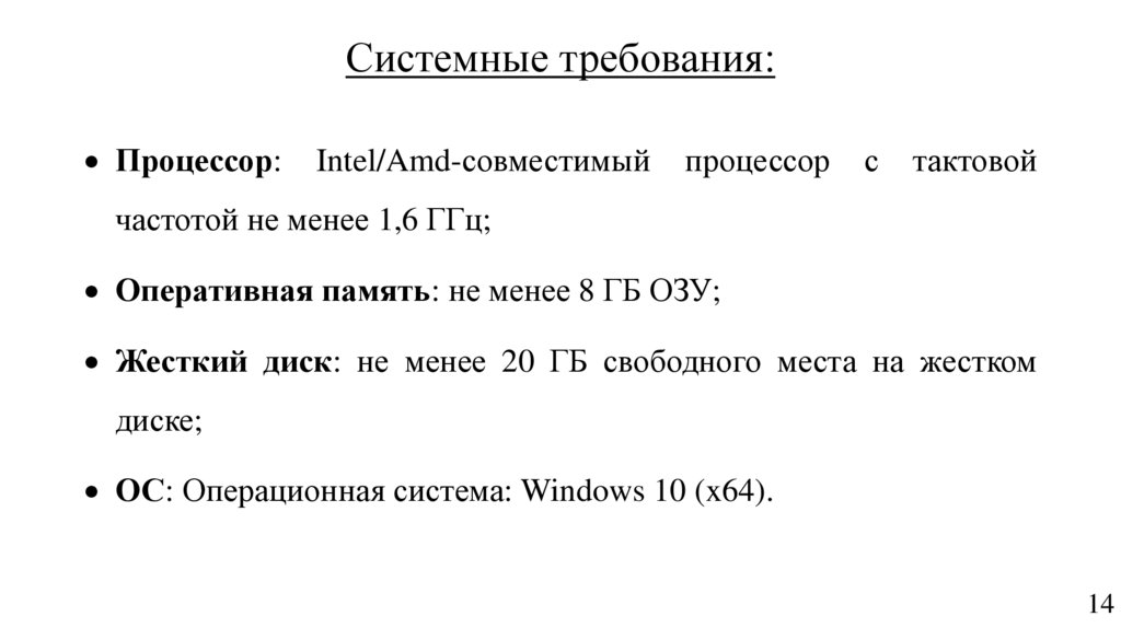 Жесткий диск: не менее 20 ГБ свободного места на жестком