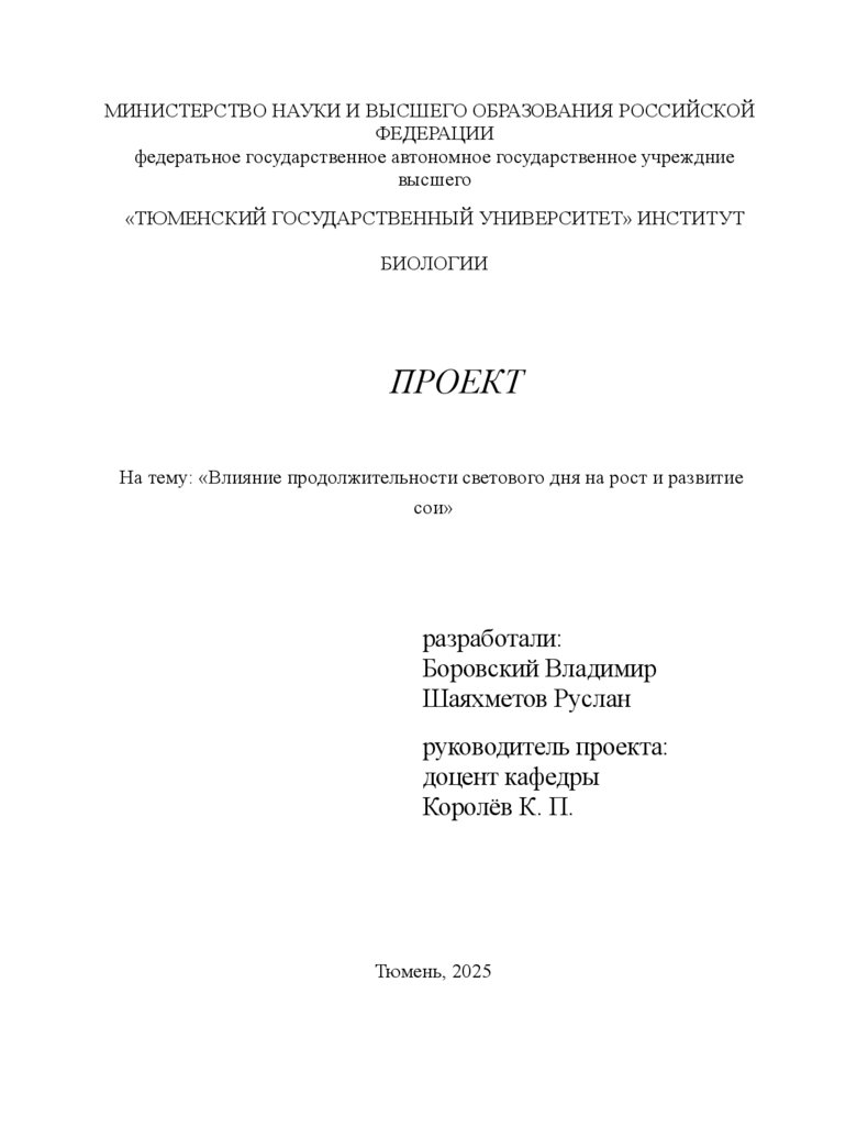 На тему: «Влияние продолжительности светового дня на рост и развитие