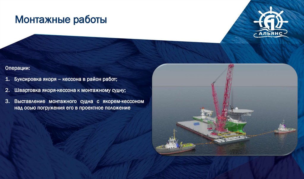 В рамка заключенного договора № R-PD-25-004 от 23.05.2025 г., Подрядчик выполняет работы по монтажу якорейкессонов, подготовке морского подводного трубопровода (МПТ) к производству работ по замене ВПУ, демонтажу