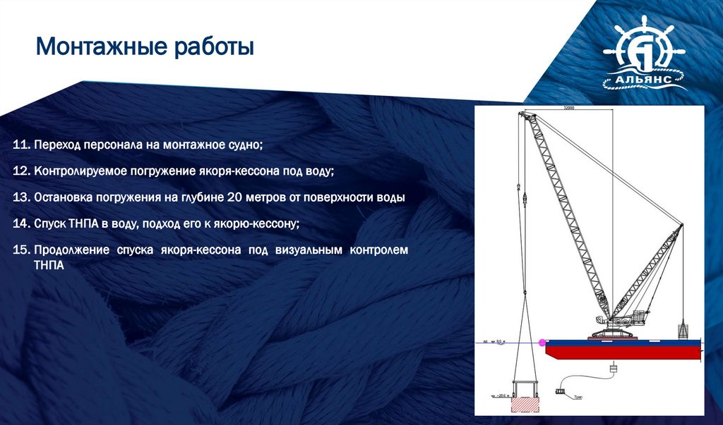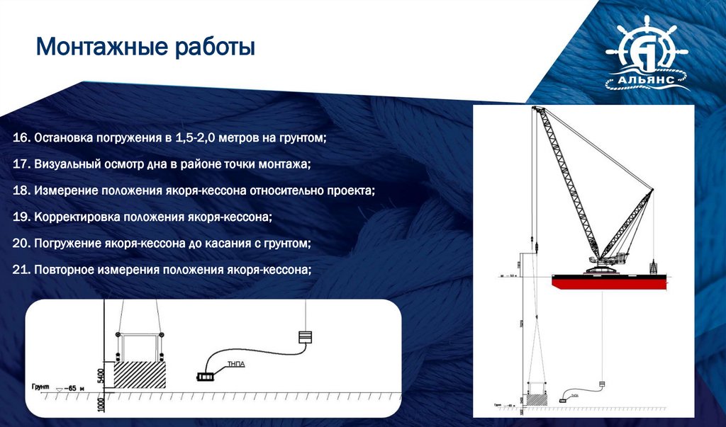 Обеспечение надводного позиционирования плавсредств, вовлеченных в процесс монтажа;