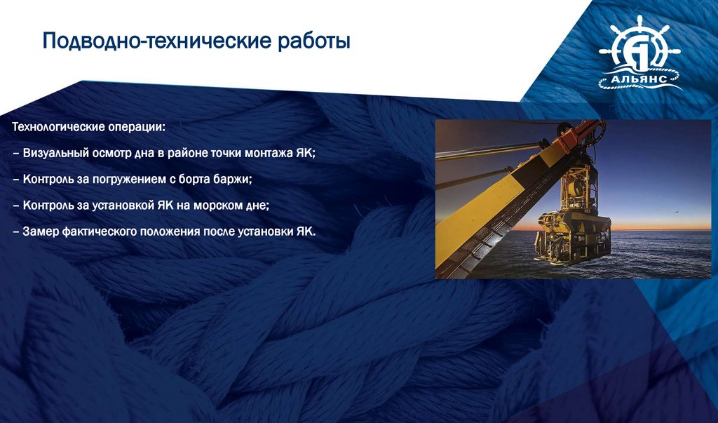 Технологические операции:– Визуальный осмотр дна в районе точки монтажа ЯК;