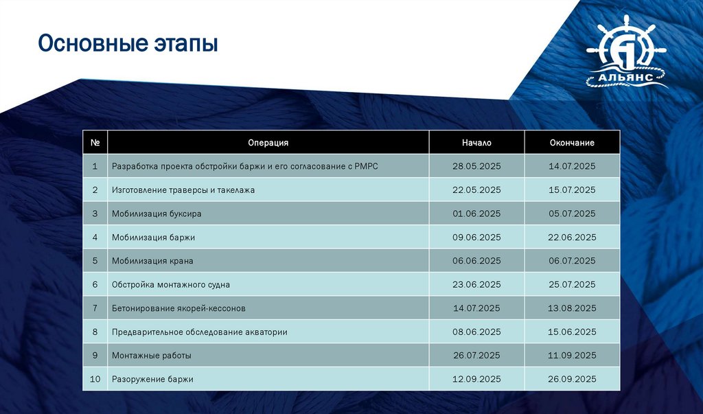 Данный документ отражает краткий план морских операций по монтажу якорей-кессонов (ЯК) в навигацию 2025 года