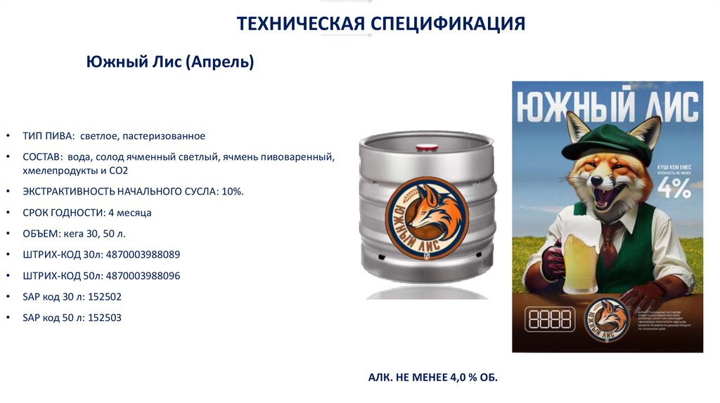 ТЕХНИЧЕСКАЯ СПЕЦИФИКАЦИЯХмельной лось (Октябрь)