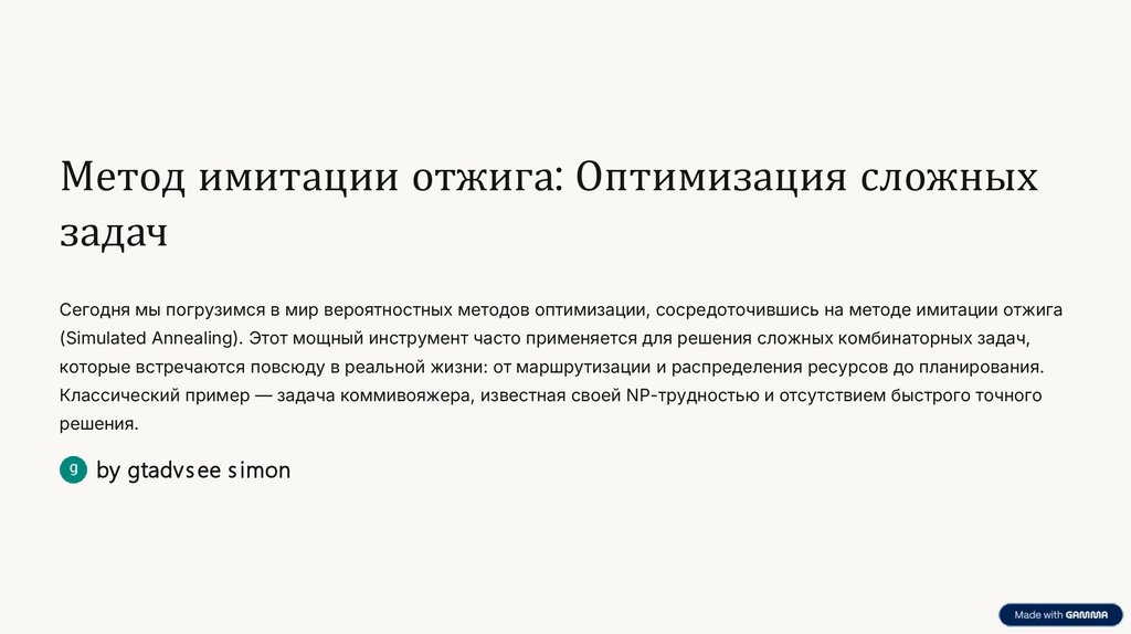 Сегодня мы погрузимся в мир вероятностных методов оптимизации, сосредоточившись на методе имитации отжига