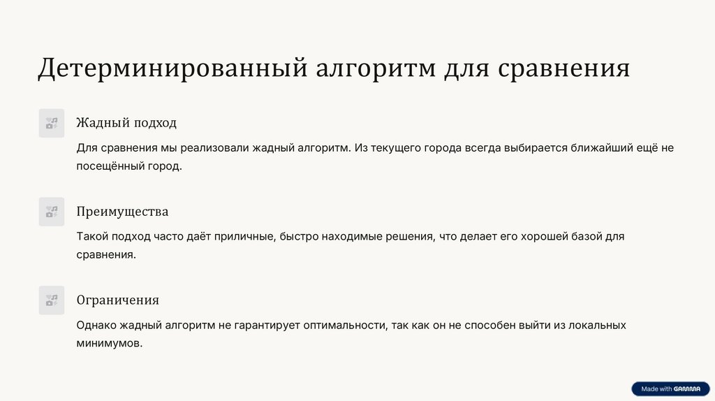 Детерминированный алгоритм для сравненияЖадный подход