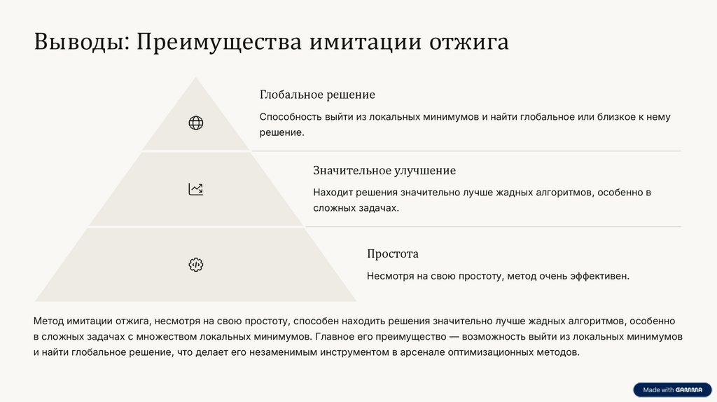 Выводы: Преимущества имитации отжигаГлобальное решение