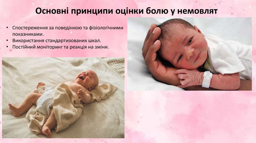 Основні принципи оцінки болю у немовлят• Спостереження за поведінкою та фізіологічними