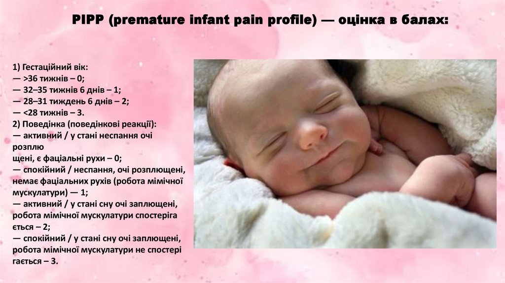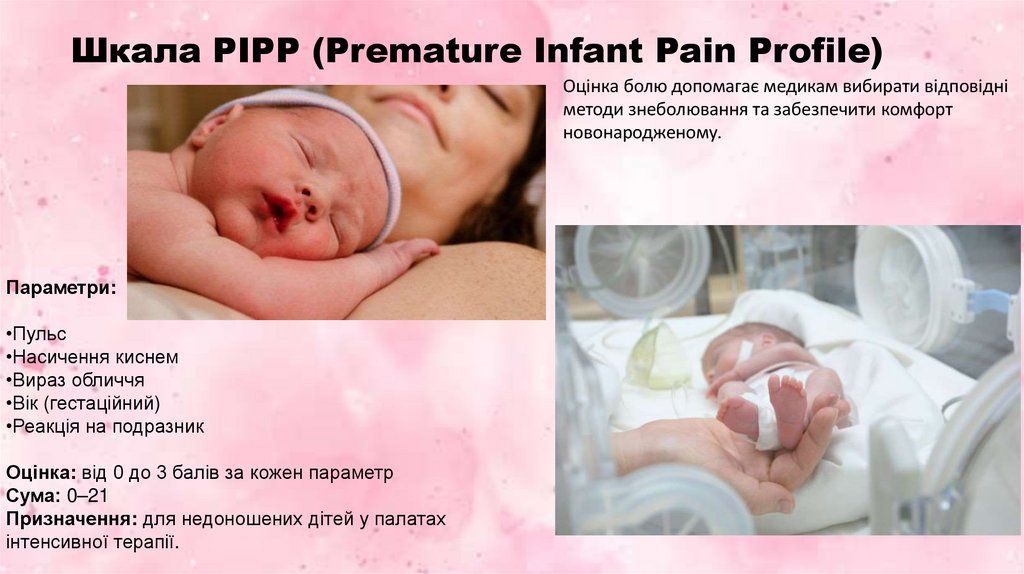 Шкала PIPP (Premature Infant Pain Profile)Оцінка болю допомагає медикам вибирати відповідні