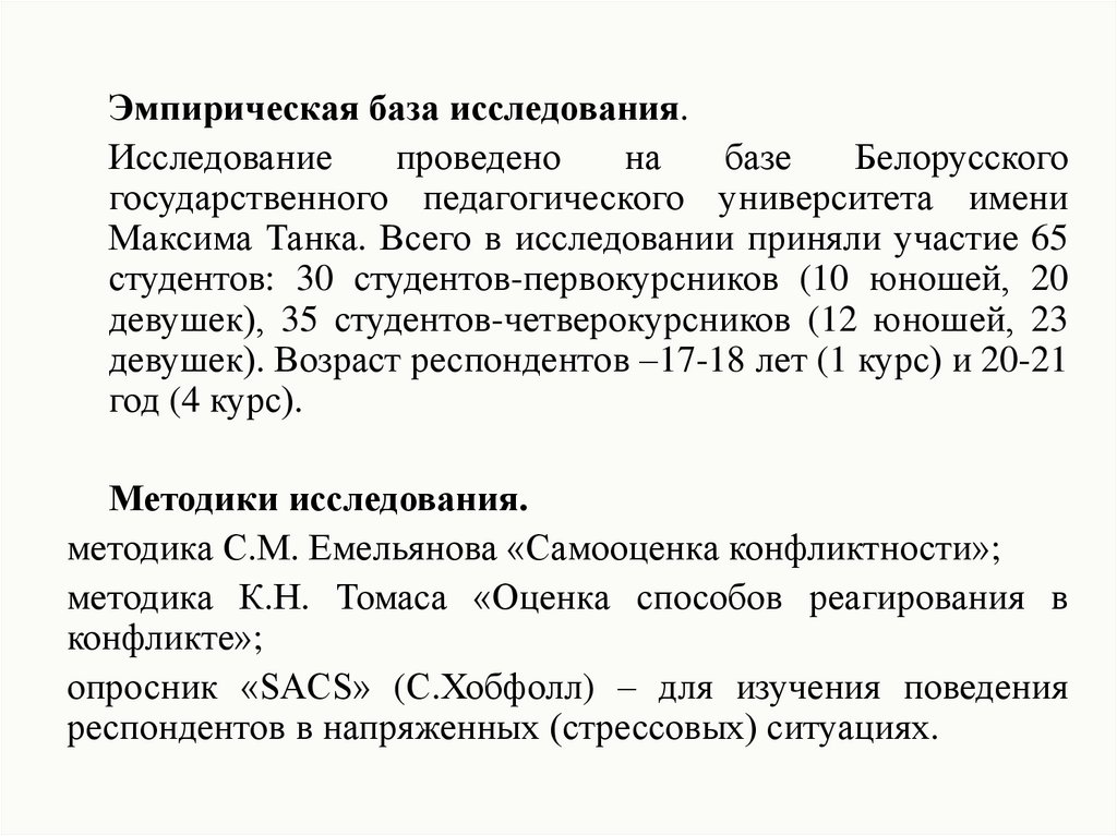 Эмпирическая база исследования.Исследование