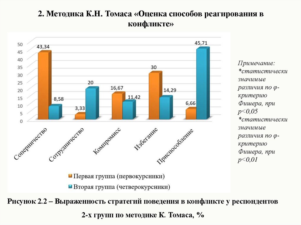 2-х групп по методике К. Томаса, %
