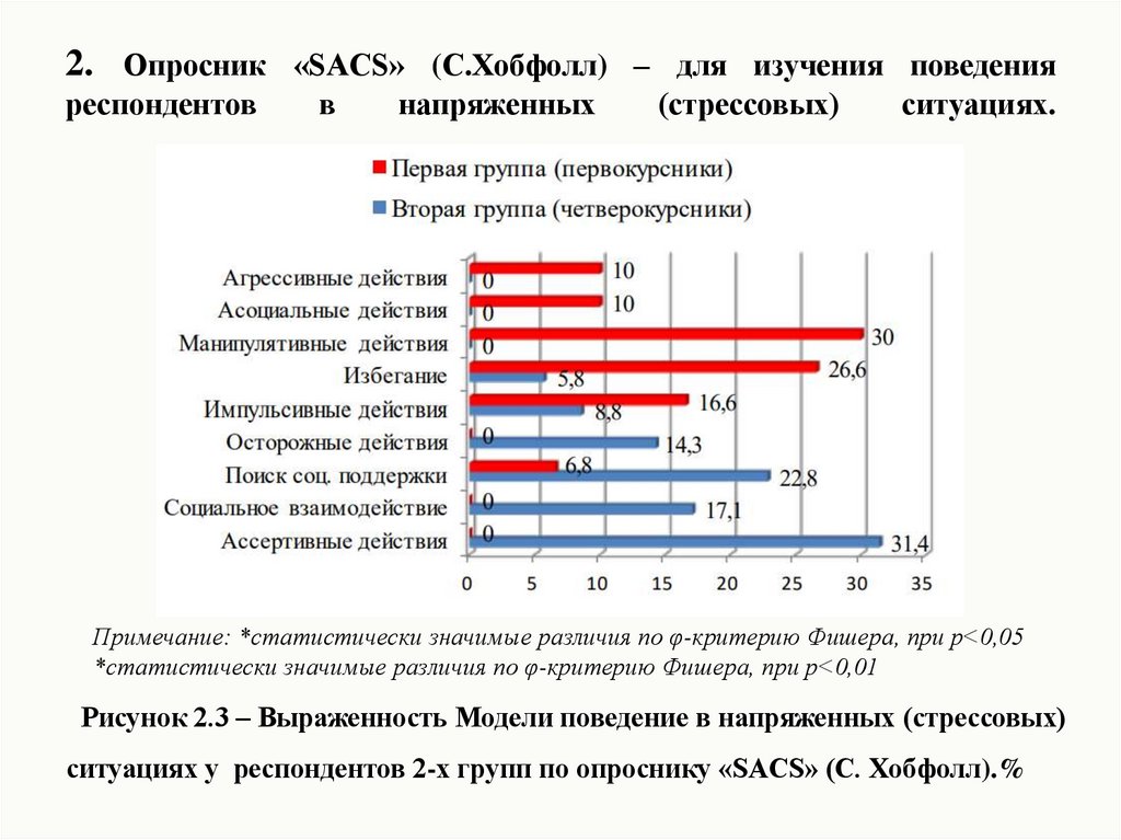 7. 2. Опросник «SACS» (С.Хобфолл) – для изучения поведения респондентов в напряженных (стрессовых) ситуациях.