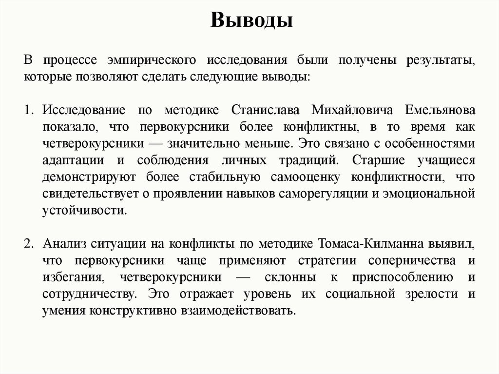 ВыводыВ процессе эмпирического исследования были получены результаты,