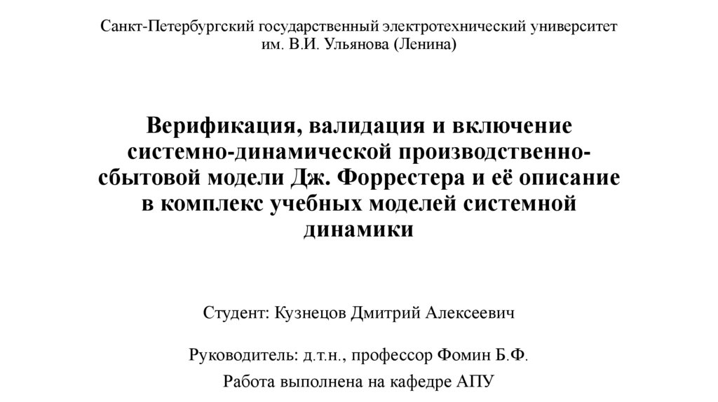 1. Санкт-Петербургский государственный электротехнический университет им. В.И. Ульянова (Ленина)