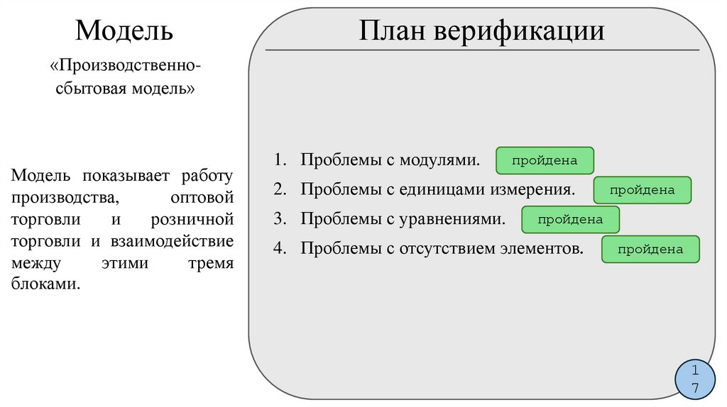 • Завершить верификацию и выполнить валидацию производственно-сбытовой