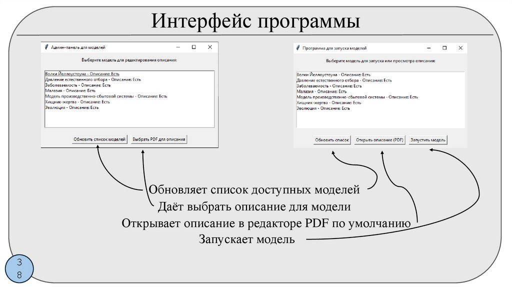 моделей, снабженным стартовым пользовательским интерфейсом.