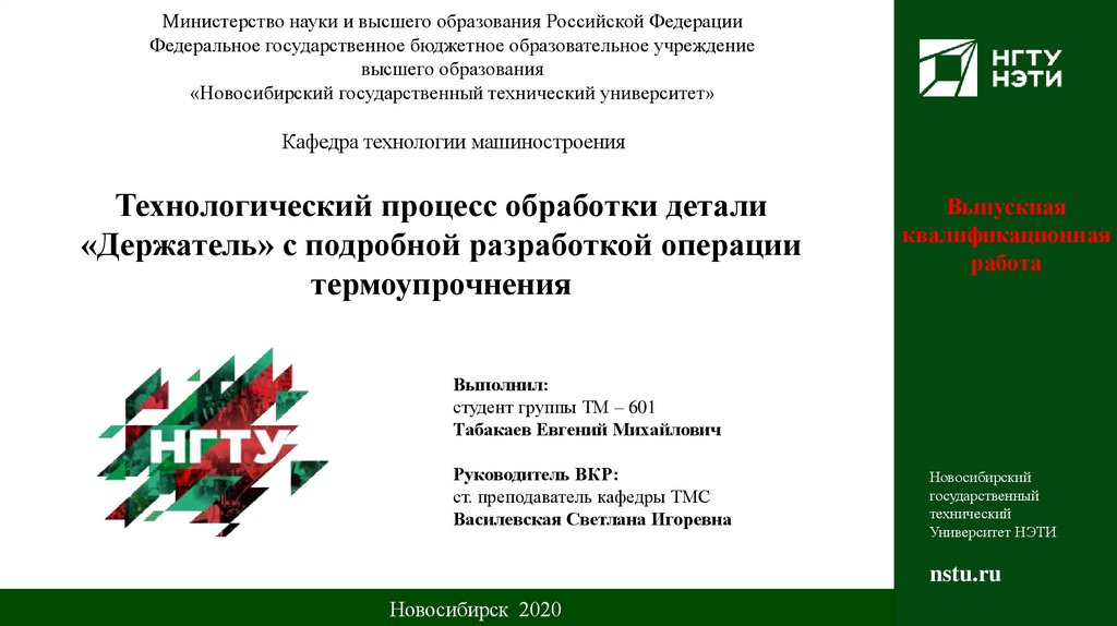 «Держатель» с подробной разработкой операции термоупрочнения. Выпускная квалификационная работа