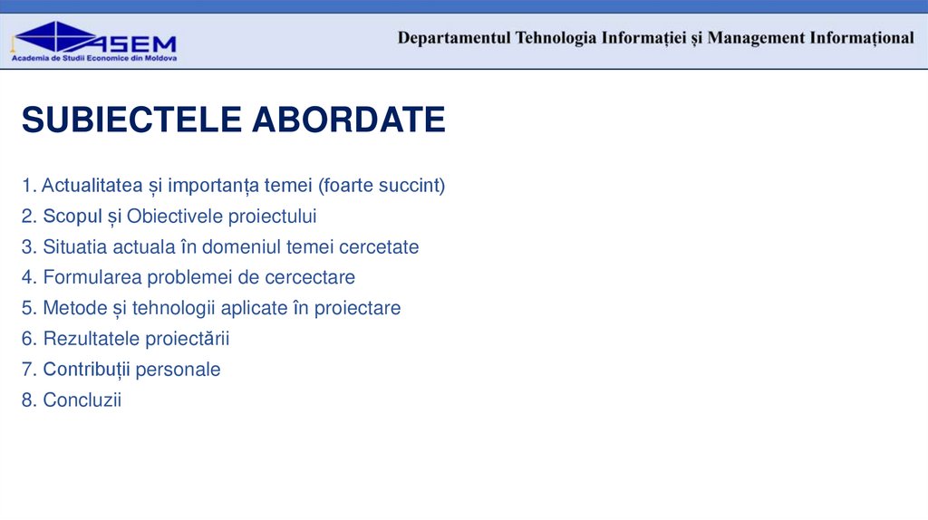 SUBIECTELE ABORDATE1. Actualitatea și importanța temei (foarte succint)