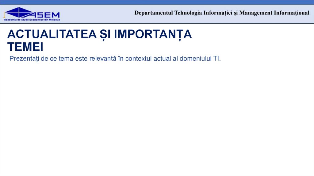 Prezentați de ce tema este relevantă în contextul actual al domeniului TI.