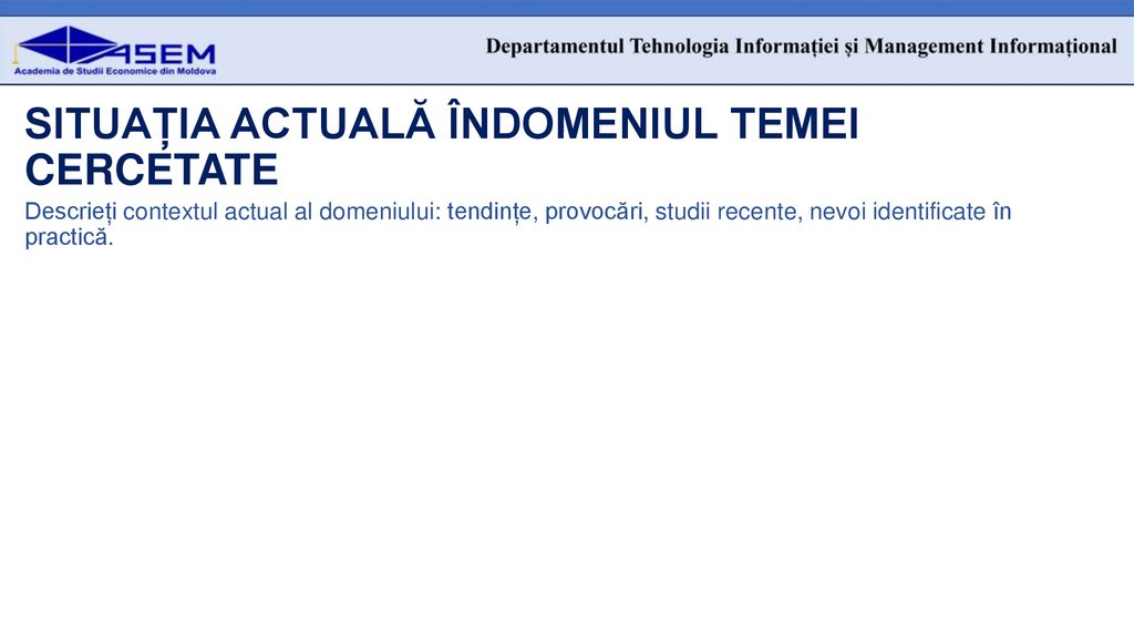 SITUAȚIA ACTUALĂ ÎNDOMENIUL TEMEICERCETATE
