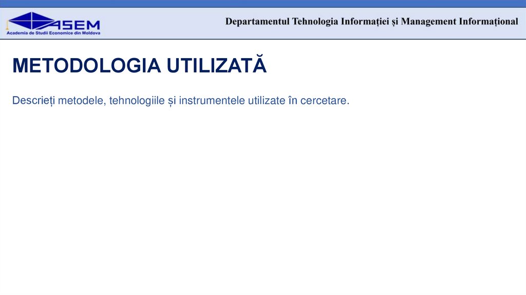 METODOLOGIA UTILIZATĂDescrieți metodele, tehnologiile și instrumentele utilizate în cercetare.