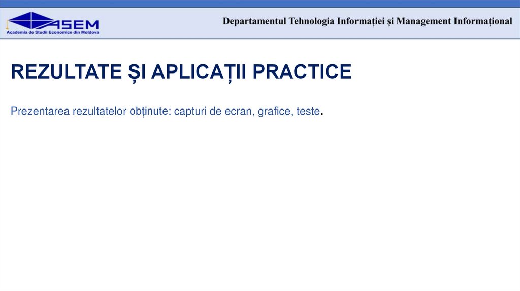 REZULTATE ȘI APLICAȚII PRACTICEPrezentarea rezultatelor obținute: capturi de ecran, grafice, teste.