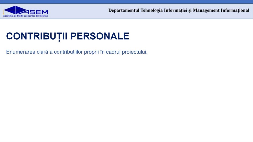 CONTRIBUȚII PERSONALEEnumerarea clară a contribuțiilor proprii în cadrul proiectului.