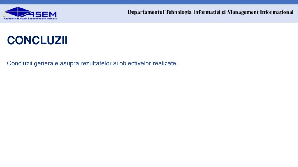 CONCLUZIIConcluzii generale asupra rezultatelor și obiectivelor realizate.