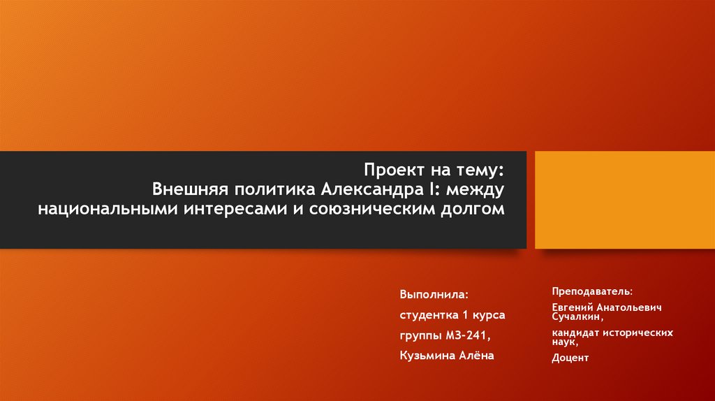 1. Проект на тему: Внешняя политика Александра I: между национальными интересами и союзническим долгом
