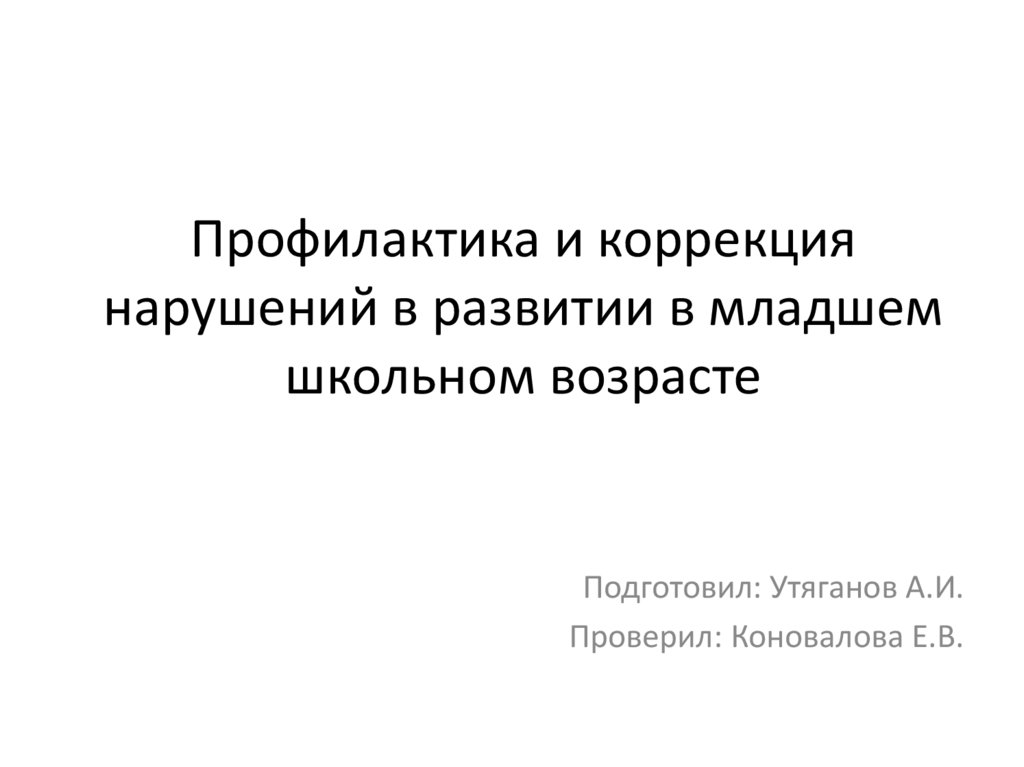 Профилактика и коррекция нарушений в развитии в младшем школьном возрасте