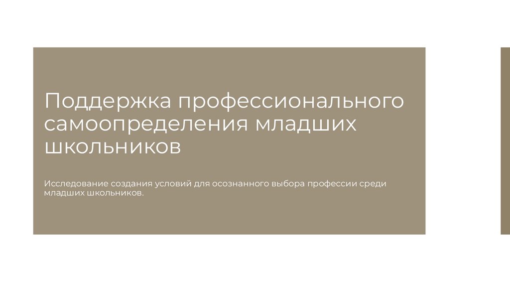 Поддержка профессионального самоопределения младших школьников. Исследование создания условий для осознанного выбора профессии