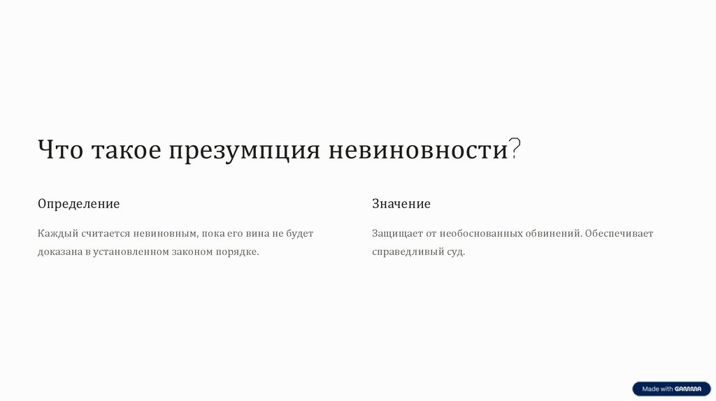 Только вступивший в силу приговор суда может опровергнуть невиновность.