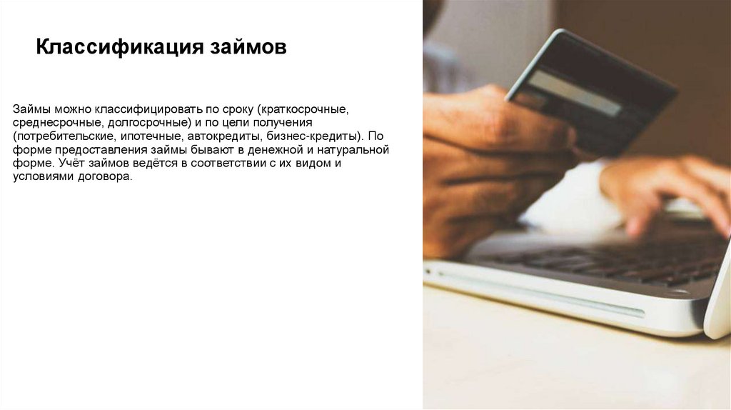 Классификация займовЗаймы можно классифицировать по сроку (краткосрочные,