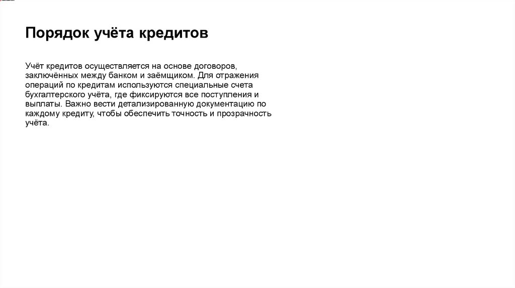 Порядок учёта кредитовУчёт кредитов осуществляется на основе договоров,
