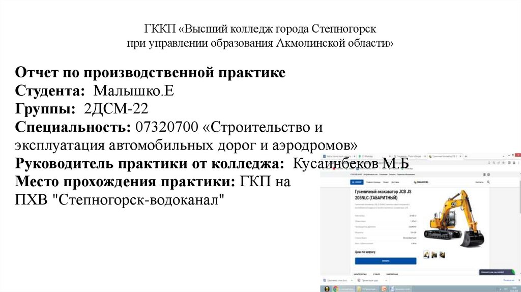 Руководитель практики от колледжа: Кусаинбеков М.Б