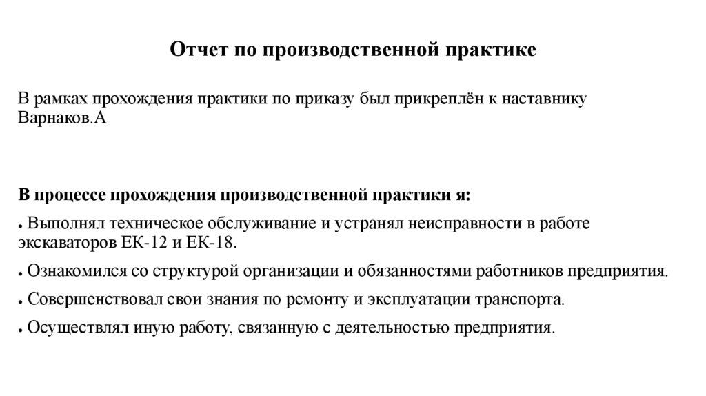 Отчет по производственной практикеВ рамках прохождения практики по приказу был прикреплён к наставнику