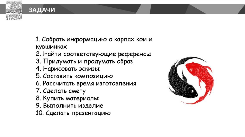 ЗАДАЧИ1. Собрать информацию о карпах кои и