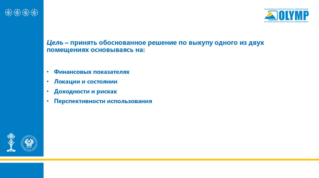 Цель – принять обоснованное решение по выкупу одного из двухпомещениях основываясь на: