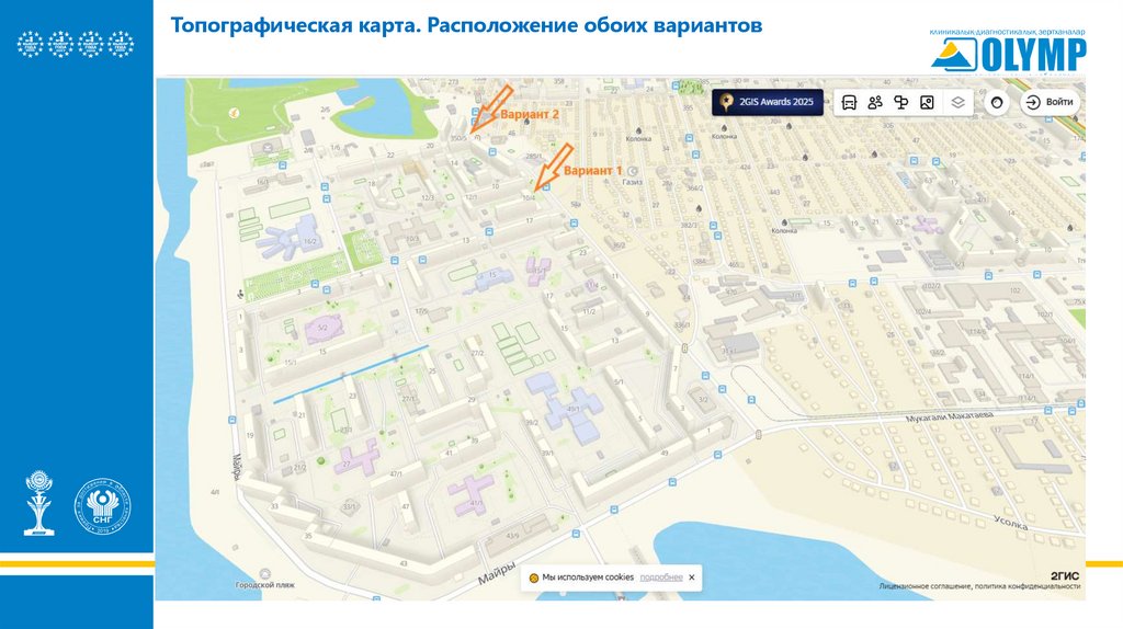 Топографическая карта. Расположение обоих вариантов4.