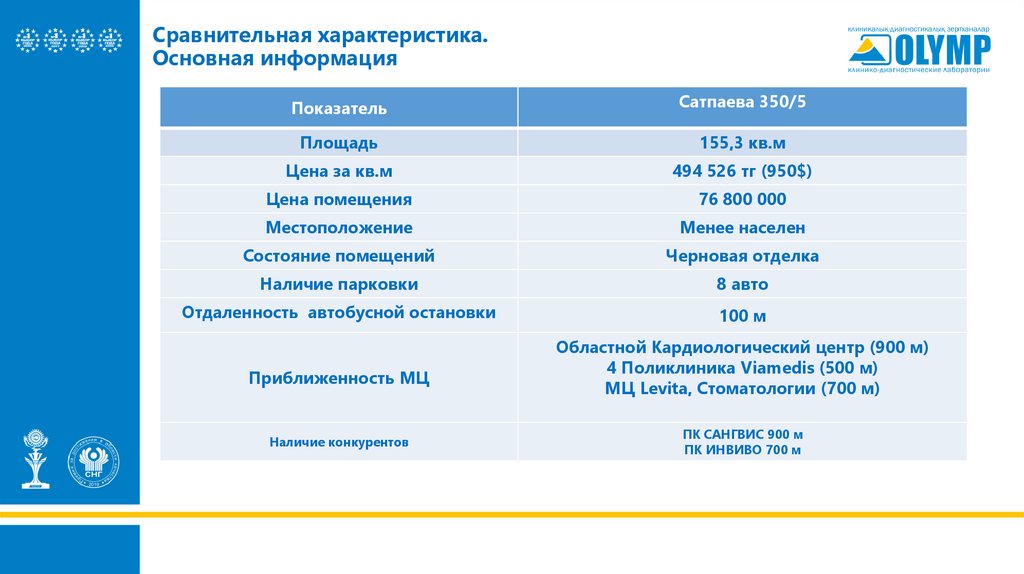 Сравнительная характеристика.Основная информация