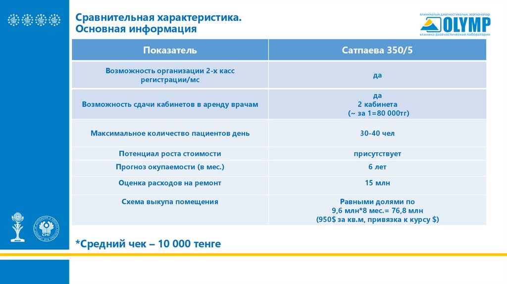 *Средний чек – 10 000 тенге