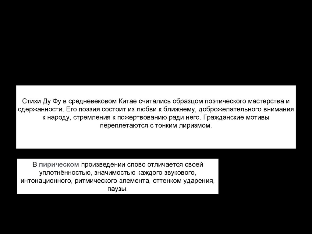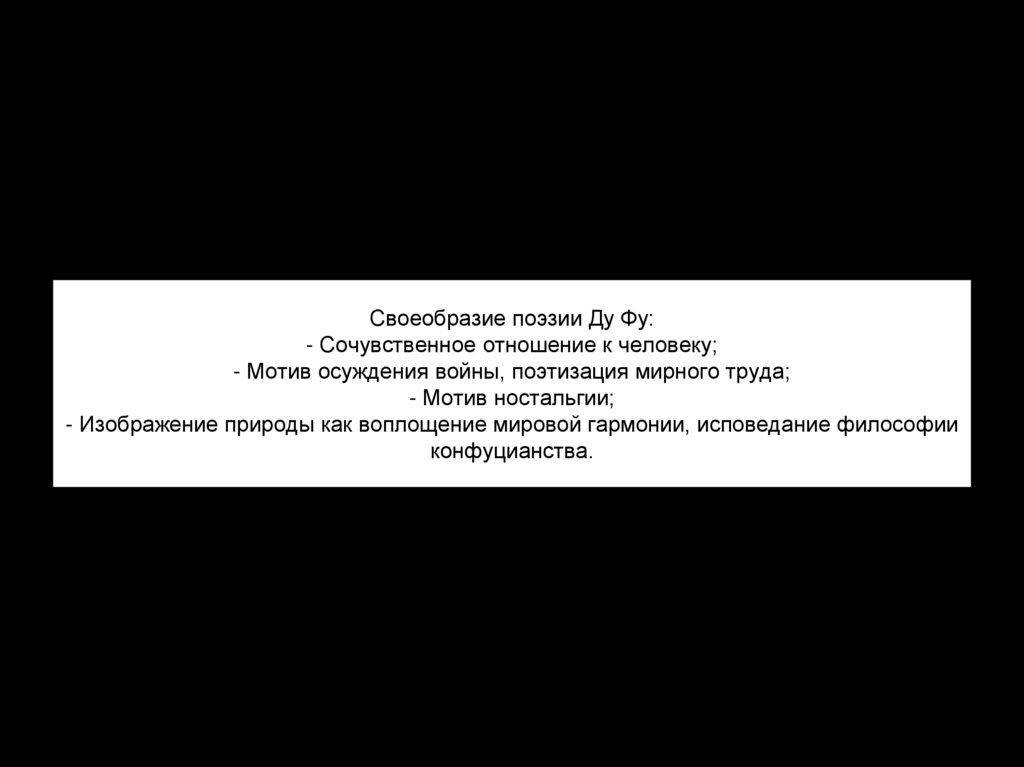 Своеобразие поэзии Ду Фу:- Сочувственное отношение к человеку;