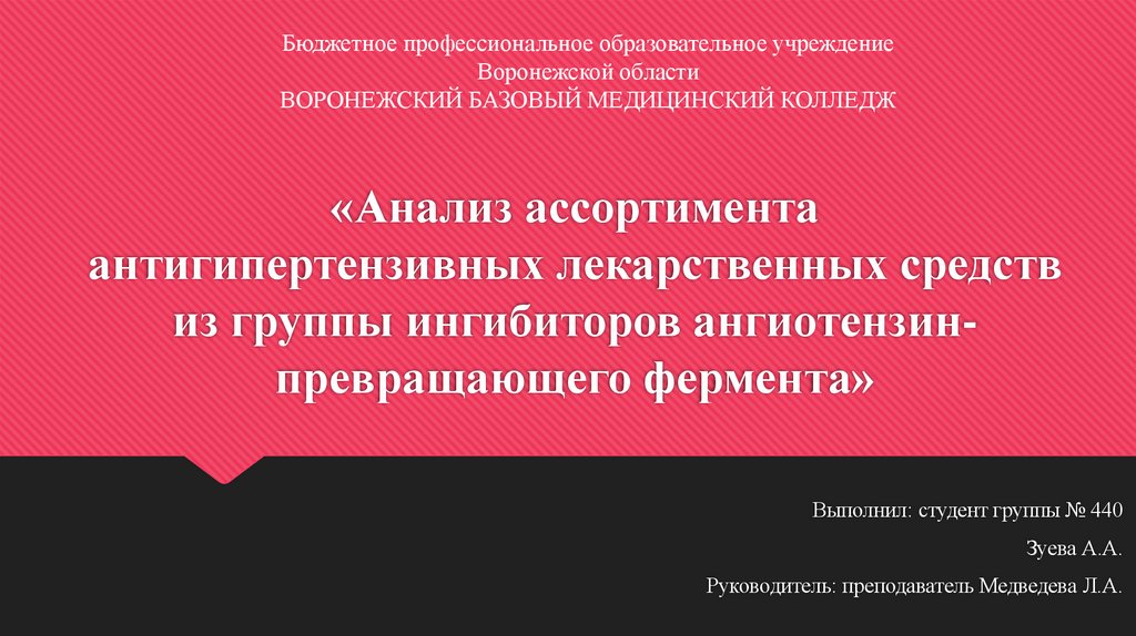 1. «Анализ ассортимента антигипертензивных лекарственных средств из группы ингибиторов ангиотензин- превращающего фермента»