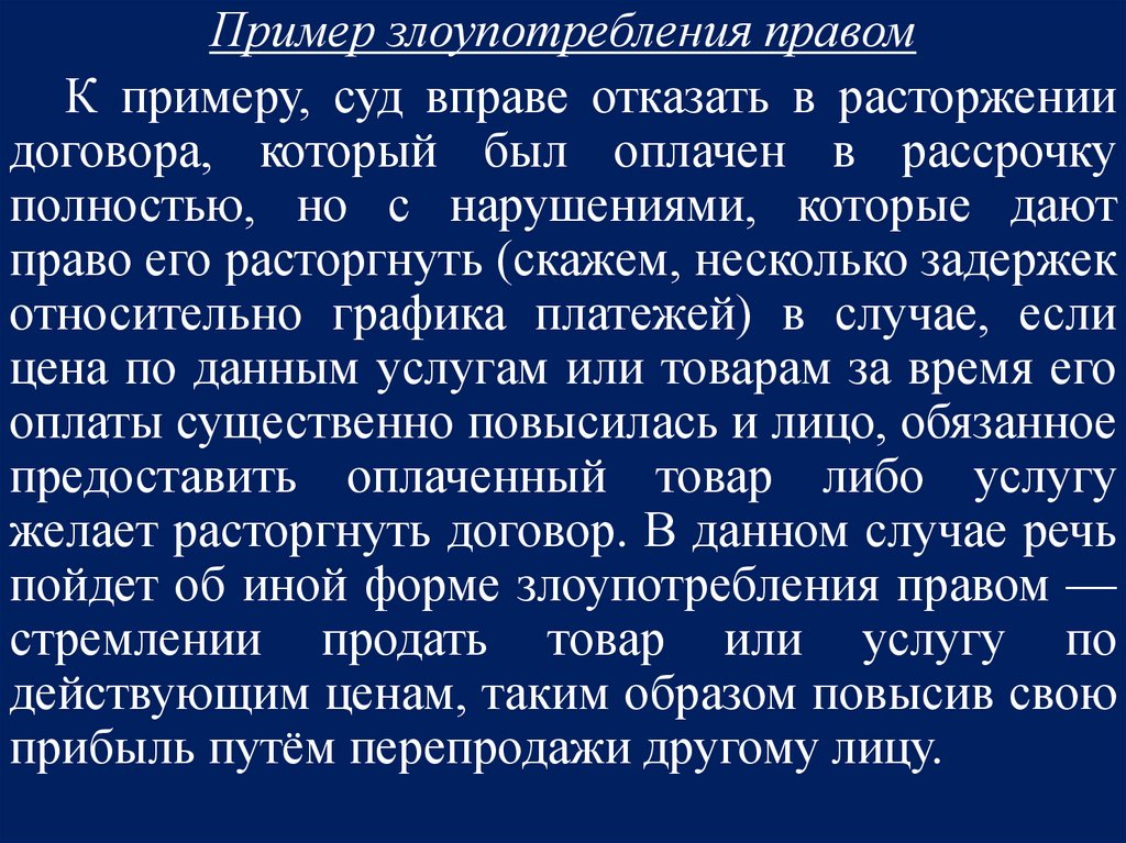 Пример злоупотребления правомК примеру, суд вправе отказать в расторжении