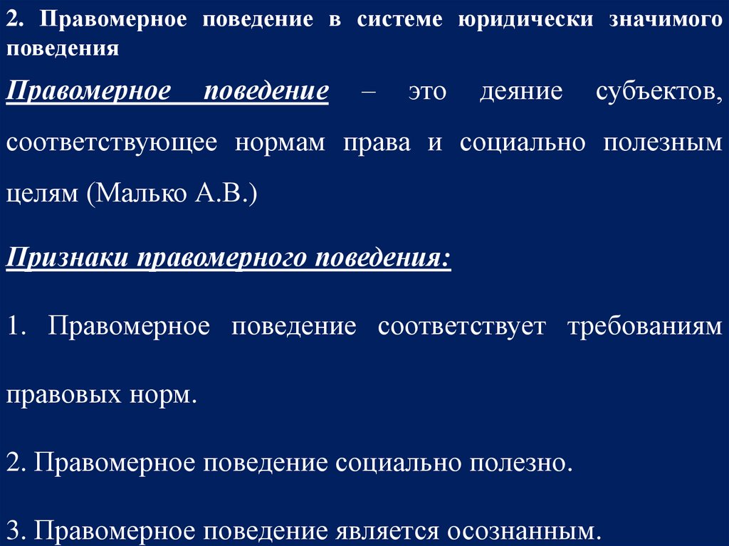 2. Законопослушное поведение – это ответственное правомерное поведение,