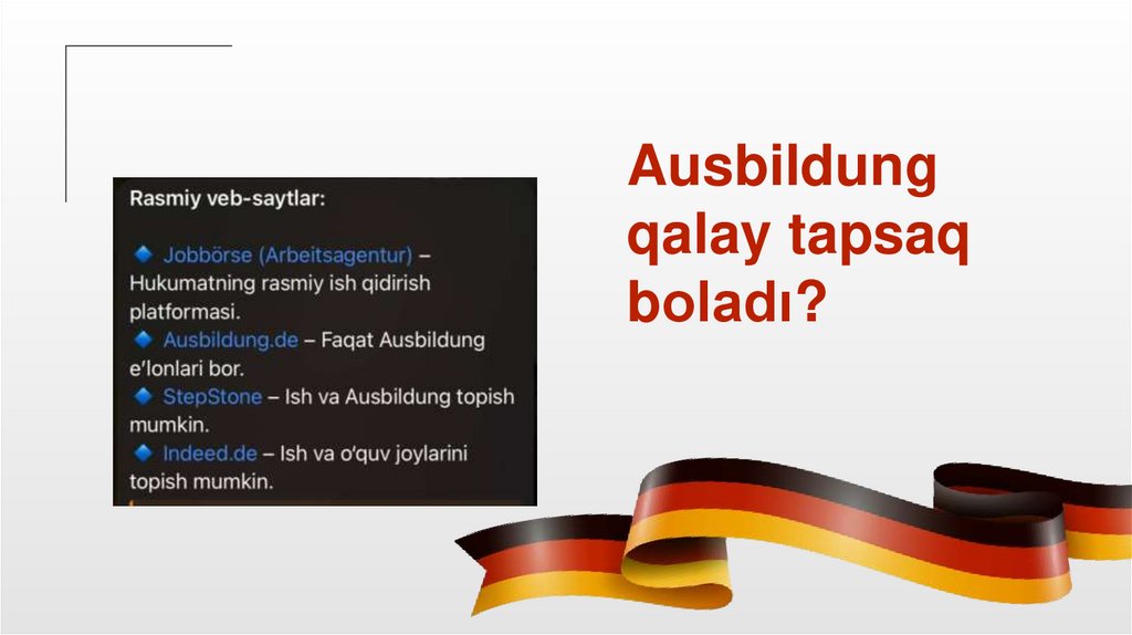 Ausbildung haqqındaDawamlılıǵı: 3-4-5 jıl