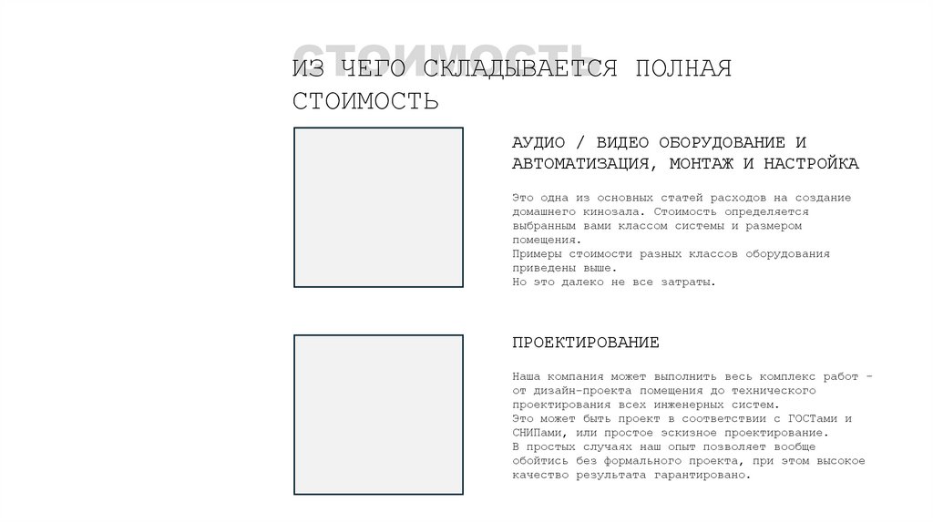 домашнего кинозала. Стоимость определяется